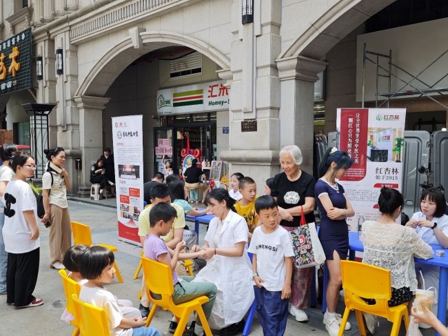 除了专业合作,“看见中医力量”的另一条重要公开线索,是它与公益行动的结合。红杏林相关公益活动中,专业医师团队走进公共空间,面向市民开展中医义诊,围绕脾胃、睡眠、亚健康等常见问题提供辨证建议和个性化调理思路,也会对儿童健康做推拿、刮痧等温和调理,并向家长传授日常可用的基础手法。